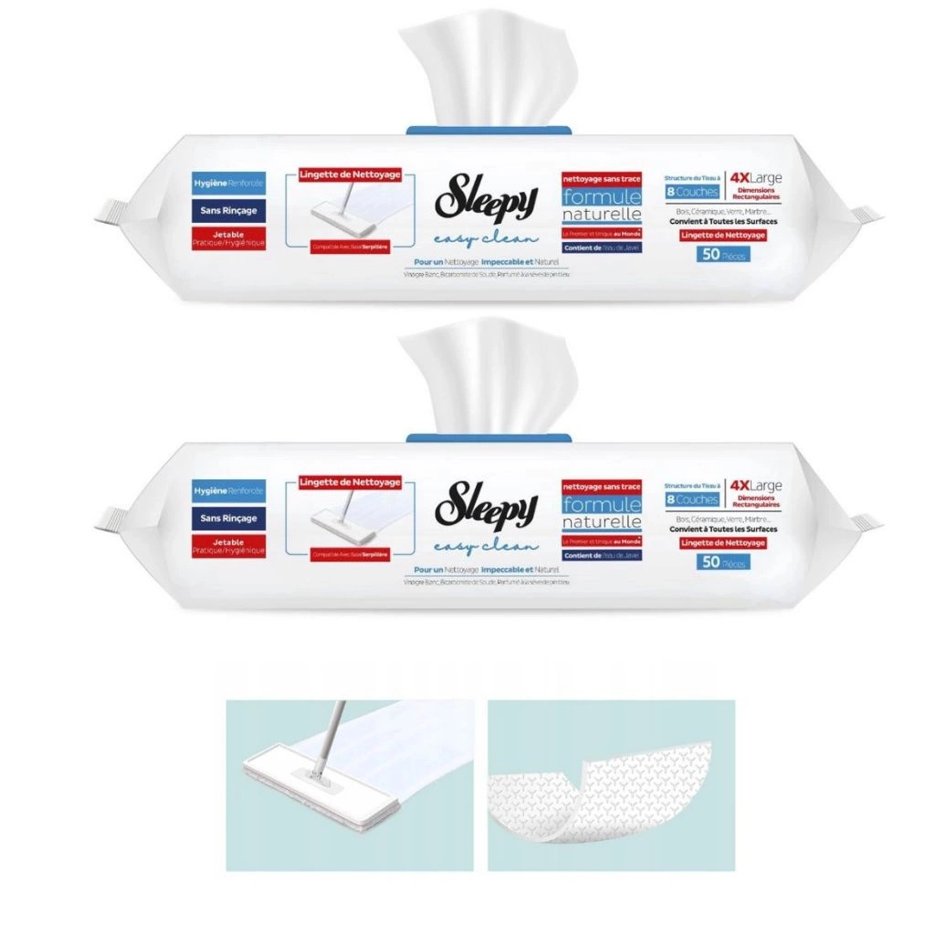 Komplet składa się z 2x Sleepy mokre wkłady do mopa 50szt w opak. ekstra mocne z wybielaczem