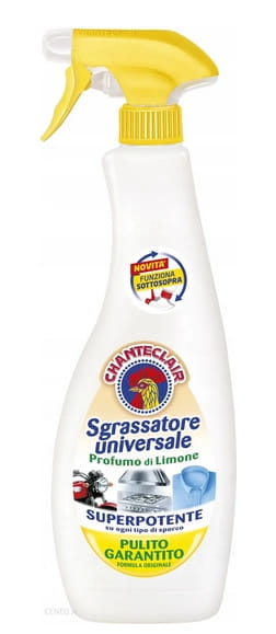 Uniwersalny odtłuszczacz w sprayu Chante Clair Sgrassatore to niezawodny środek do codziennego sprzątania domu. Skutecznie usuwa tłuszcz, przypalenia, zabrudzenia kuchenne oraz osady z różnych powierzchni, pozostawiając świeży cytrynowy zapach i idealną czystość. Dzięki wygodnemu atomizerowi preparat dociera nawet do trudno dostępnych miejsc i świetnie sprawdza się zarówno w kuchni, jak i łazience czy garażu. Silna formuła odtłuszczająca pomaga szybko pozbyć się uporczywego brudu z blatów, kuchenek, piekarników, okapów, zlewów, płytek, stołów czy sprzętów AGD. Chante Clair Sgrassatore Universale to włoska jakość ceniona za wysoką skuteczność i uniwersalne zastosowanie. Produkt może być używany na wielu powierzchniach, zapewniając szybki efekt bez konieczności intensywnego szorowania.