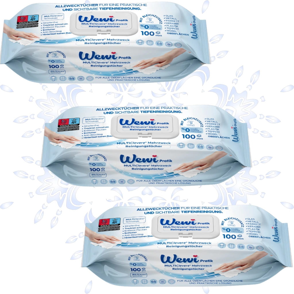Wielozadaniowe chusteczki czyszczące Wewi Pratik z wybielaczem to niezastąpiony produkt do gruntownego sprzątania w domu i biurze. Dzięki innowacyjnej technologii MULTIClever® skutecznie usuwają brud, tłuszcz oraz uporczywe plamy, pozostawiając powierzchnie idealnie czyste – bez smug i osadu.
