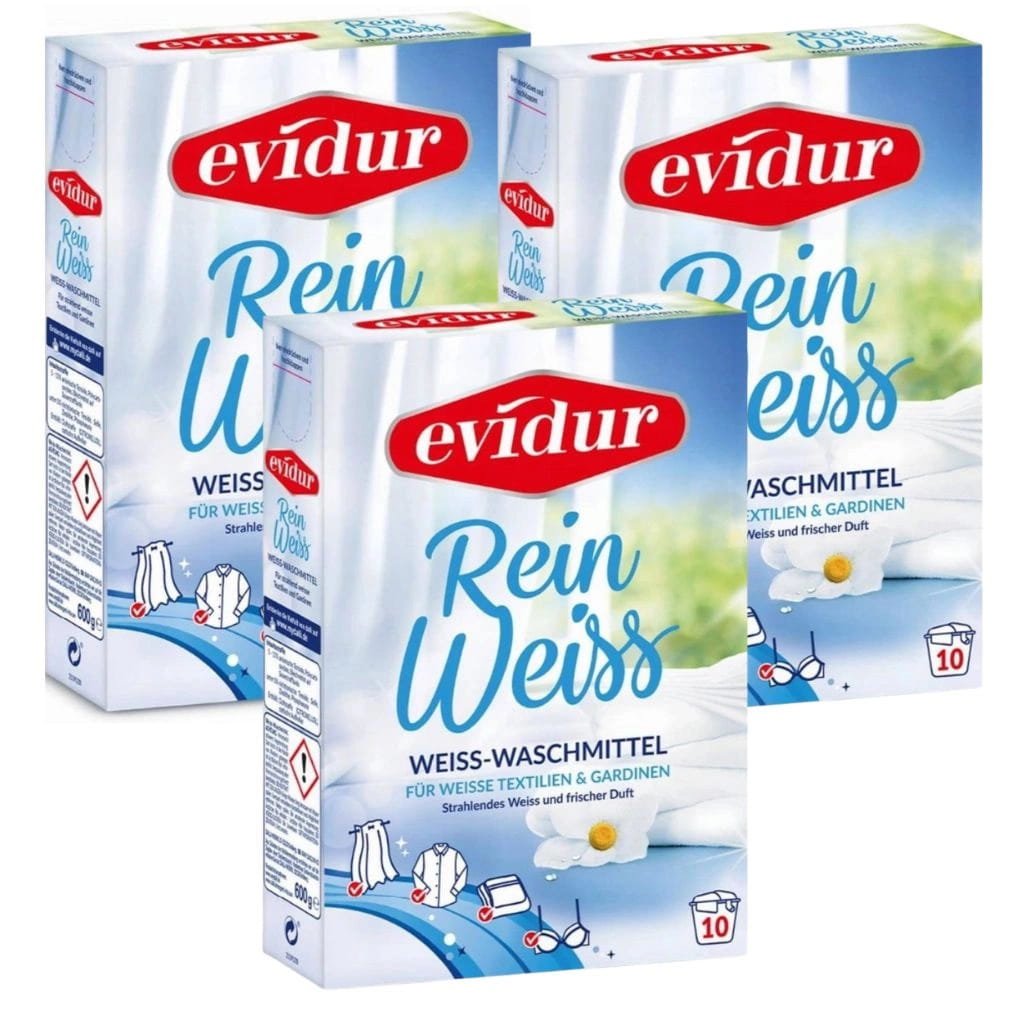 Evidur proszek wybielający do białego i firan 3x 600g, 10 prań czysta biel