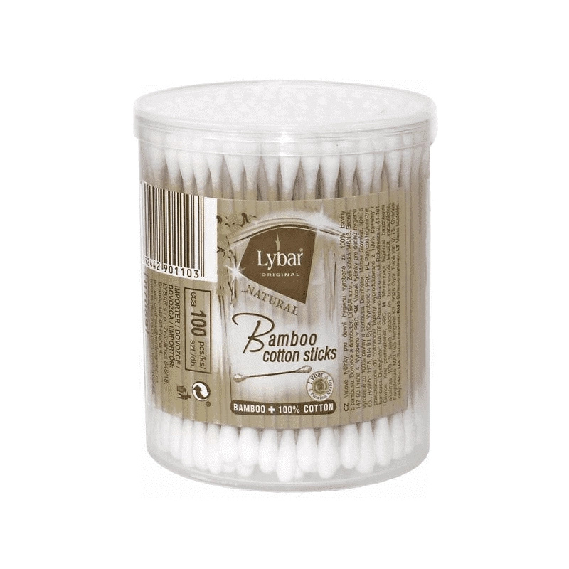 2x Lybar patyczki higieniczne bambusowe 100% bawełna 100szt w opak. pudełko