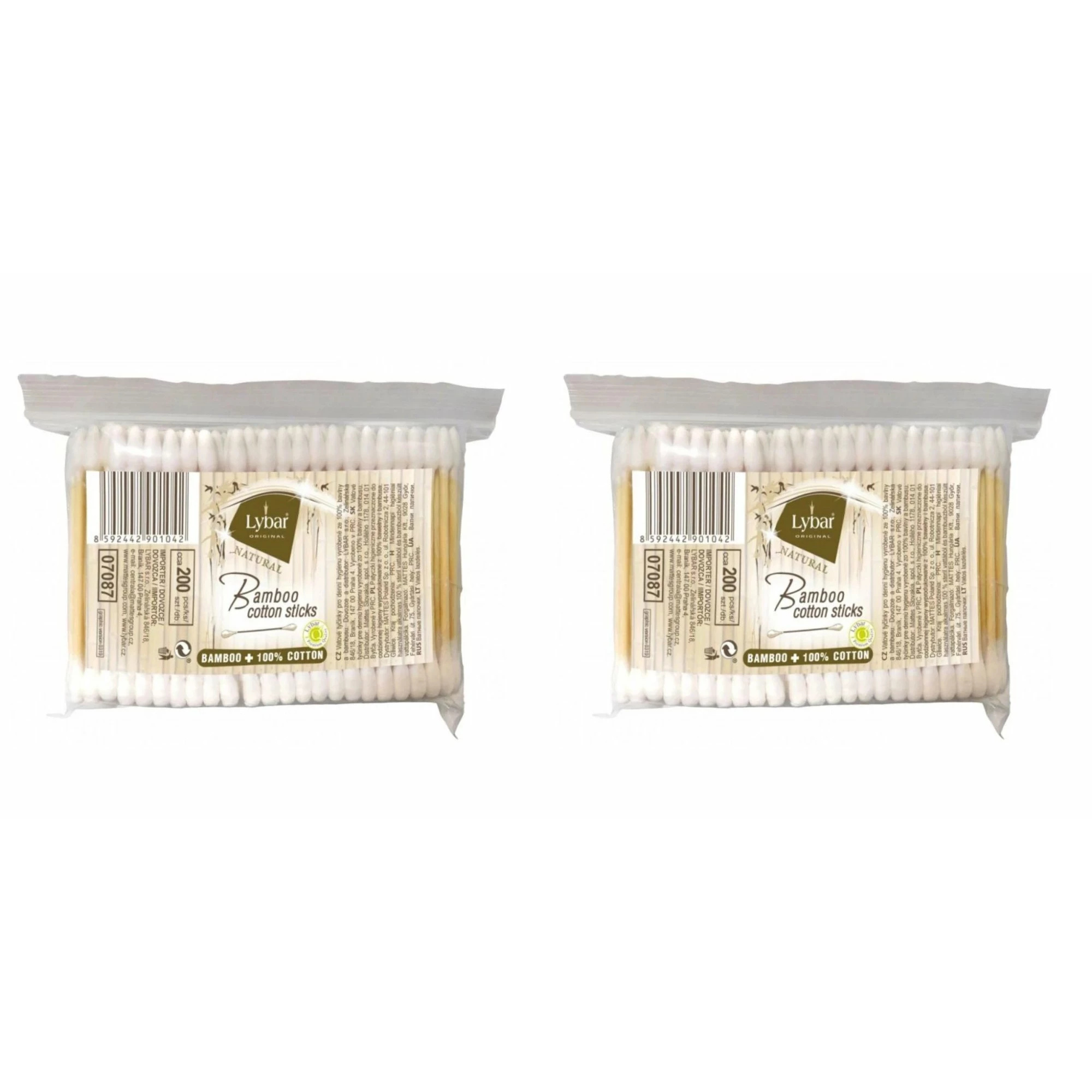Komplet składa się z 2x Lybar patyczki higieniczne bambusowe 100% bawełna 200szt w opak.