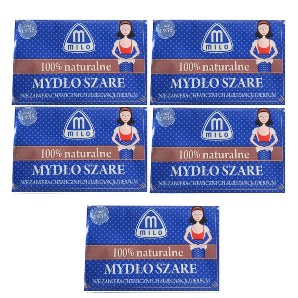 5x Milo 100% naturalne szare mydło w kostce 175g