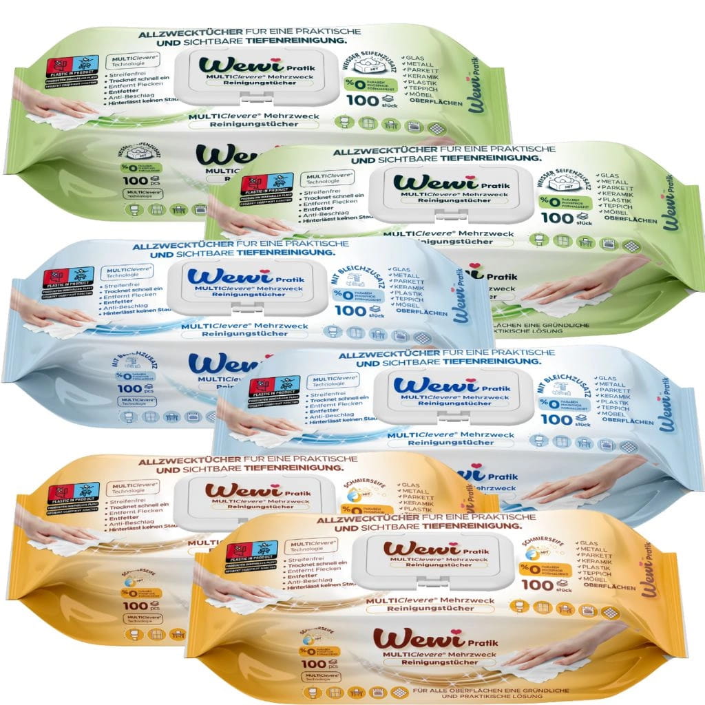 Wewi Pratik MULTIClever® to nowoczesne chusteczki wielozadaniowe, które skutecznie usuwają zabrudzenia, nie pozostawiając smug. Dzięki zawartości tradycyjnego białego mydła (Weißer Seifenzusatz) zapewniają wyjątkową świeżość, delikatność oraz przyjemny, klasyczny zapach czystości.